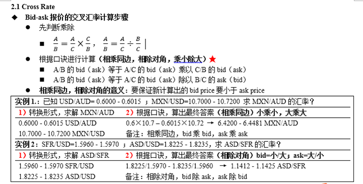 请问老师在reading10的外汇章节里面的三角套利,有一句是”乘小除大“(口诀) 这是啥意思,忘记了( ▼-▼ ), 谢谢您。
