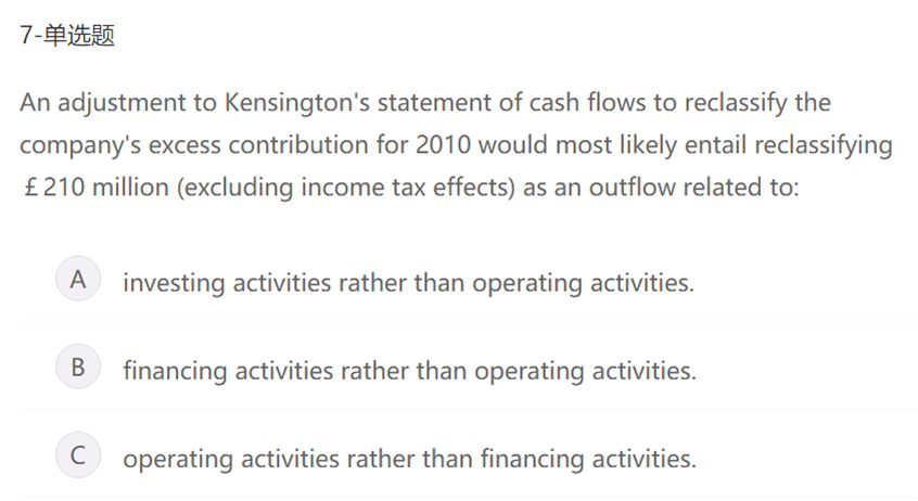 K的TPPC为483,该公司雇主供款为693英镑。这两个数字之间210差额可以被视为总养老金债务的减少。为了调整现金流量表以反映这一观点,分析师将210重新归类为与融资活动而非经营活动有关的流出。