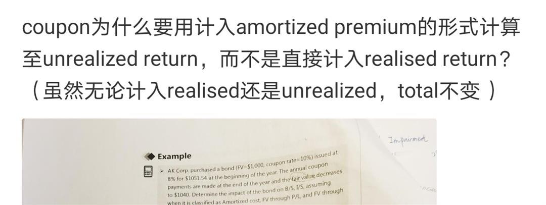 coupon为什么要用计入amortized premium的形式计算至unrealized return,而不是直接计入realised return?(虽然无论计入realised还是unrealized,total不变 )