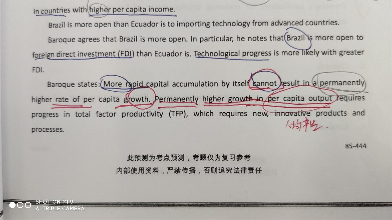 最后一段第一句的意思,资本不能带来人均产出增长率growth rate的永久增长,第二句是人均产出的增长growth需要技术进步带来。所以,符合的是新古典理论啊?