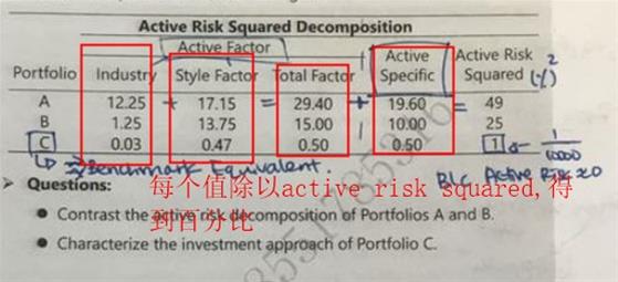 老师 请问这一题答案里的数字,除了 active risk 我知道怎么得来的,其他可以麻烦老师告诉我 where did those numbers come from? 另外 portfolio B的答案我也没有看懂,how did we come to the conclusion of industry neutral?