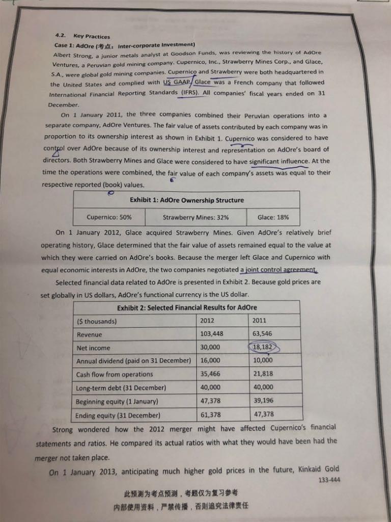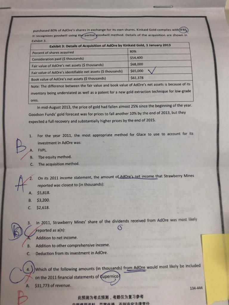 第一个case第四题 2011年那列是合并报表数据? 题目问的是合并报表数据里哪个可能在C公司个别报表上?