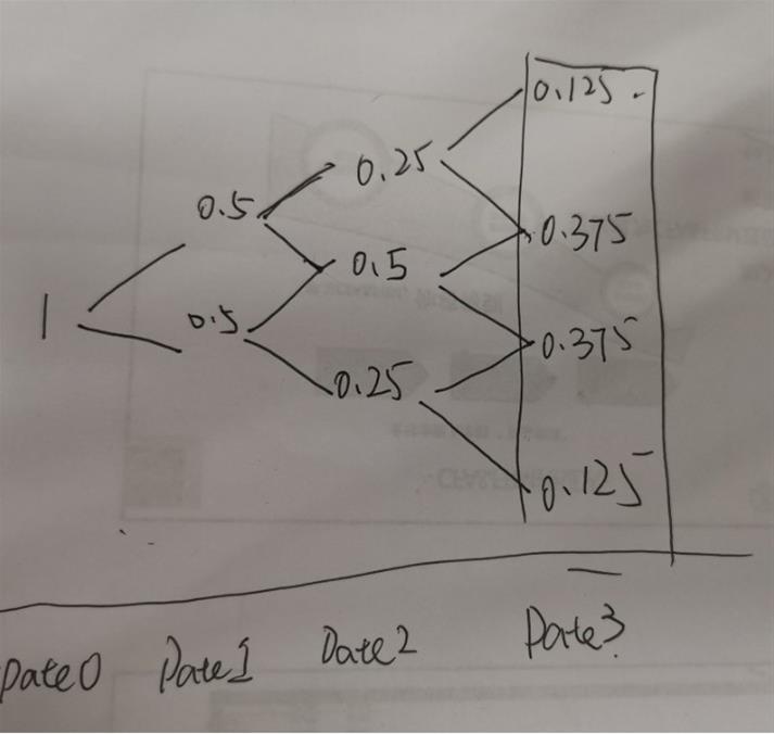 老师好, 有点困惑CASE9 的二叉树里面,为什么将3个P2折算到2个P1的时候,用到概率是0.5, 但是算expected exposures 的时候用到的概率是0.25,0.5和0.25? (我找了一个书上的案例)谢谢!