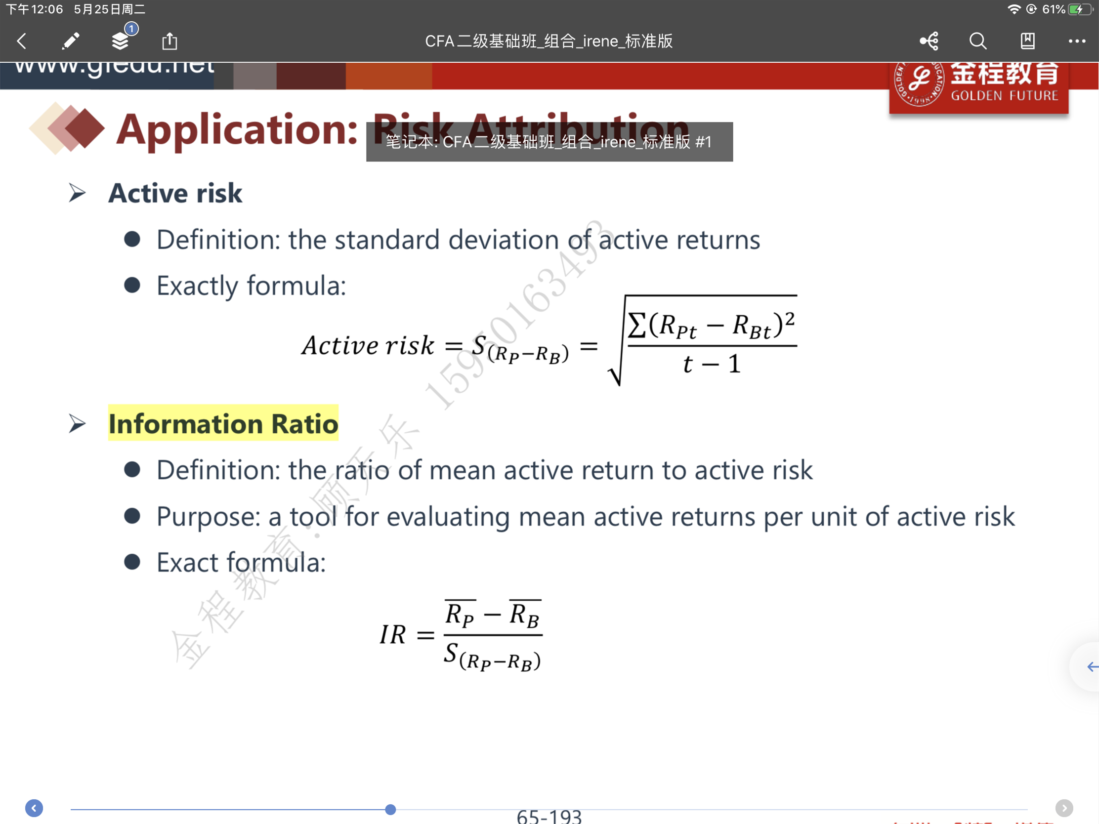 同学你好, IR的分子是active return, 是benchmark return减去portfolio returm, 不是alpha拔。。。 TE指的是active risk, 是active return的标准差。