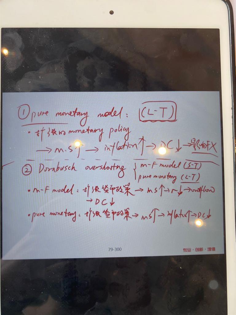 老师你好,那这里讲义上老师写的2里,Dornbusch overshooting 大括号里有M-F model和pure monetary model两种?