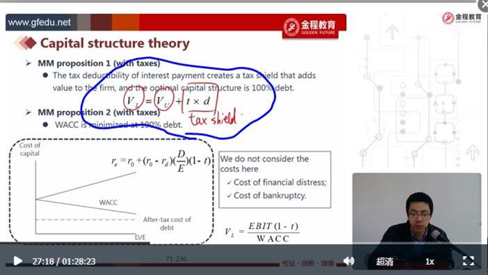 是这样,因为当公司刚刚开始举债的时候,虽然利息率在增加,但是增加的幅度少于税盾的作用。