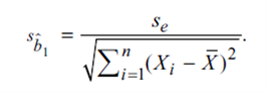 Sb1的计算公式如下,其中Se即SEE(残差的标准差)。说明存在条件异方差时,SEE变化,也会导致Sb1的变化。