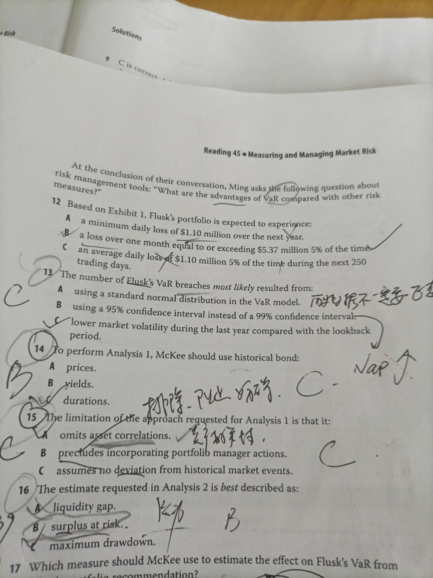 你好,原版书后题365页第13题,B选择,由于置信度增加则说明,落在损失的左边概率减少为(1-99%)/2为0.5%一侧 则V不是减少吗?但是V的计算公式却是均值-K标准差,再取绝对值,K由1.96变为2.58吧,显然这样计算结果变大,但是阴影面积又变小?那VAR是变大还是变小呢?