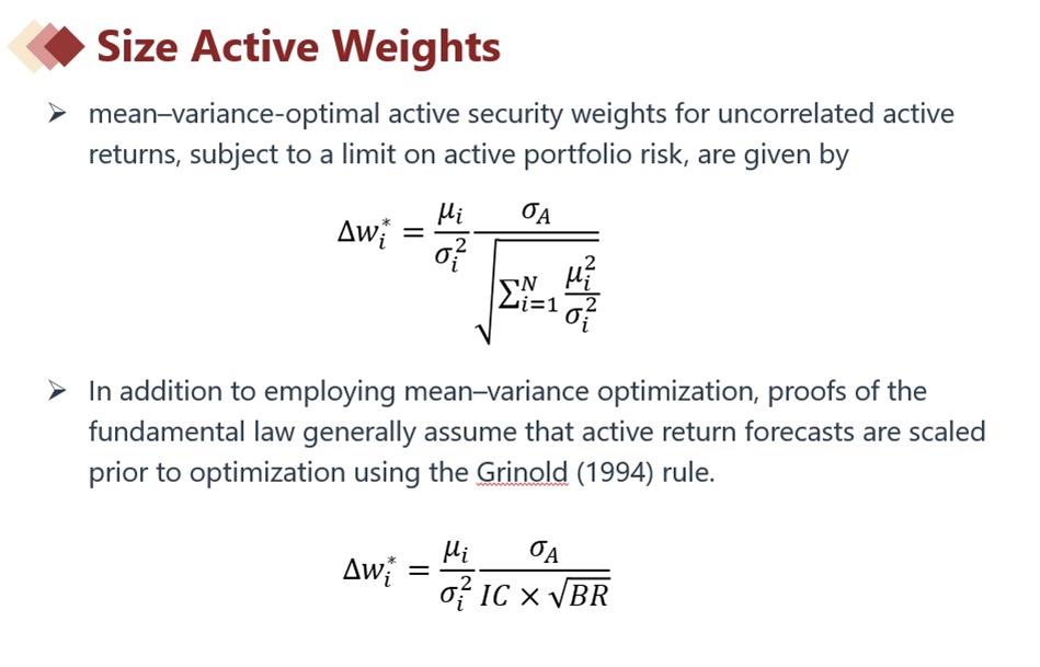同学你好,老师列的公式是计算最佳主动权重的公式,因为增加的假设降低了TC,导致了主动风险和最佳主动权重都下降(也就是说没那么aggressive了)。因此A是对的。