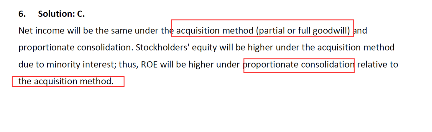 这里答案的意思是购买法中包含部分商誉法和完全商誉法,那么购买法和比例合并法的NI是相同的。(无论购买法下使用部分商誉还是完全商誉)