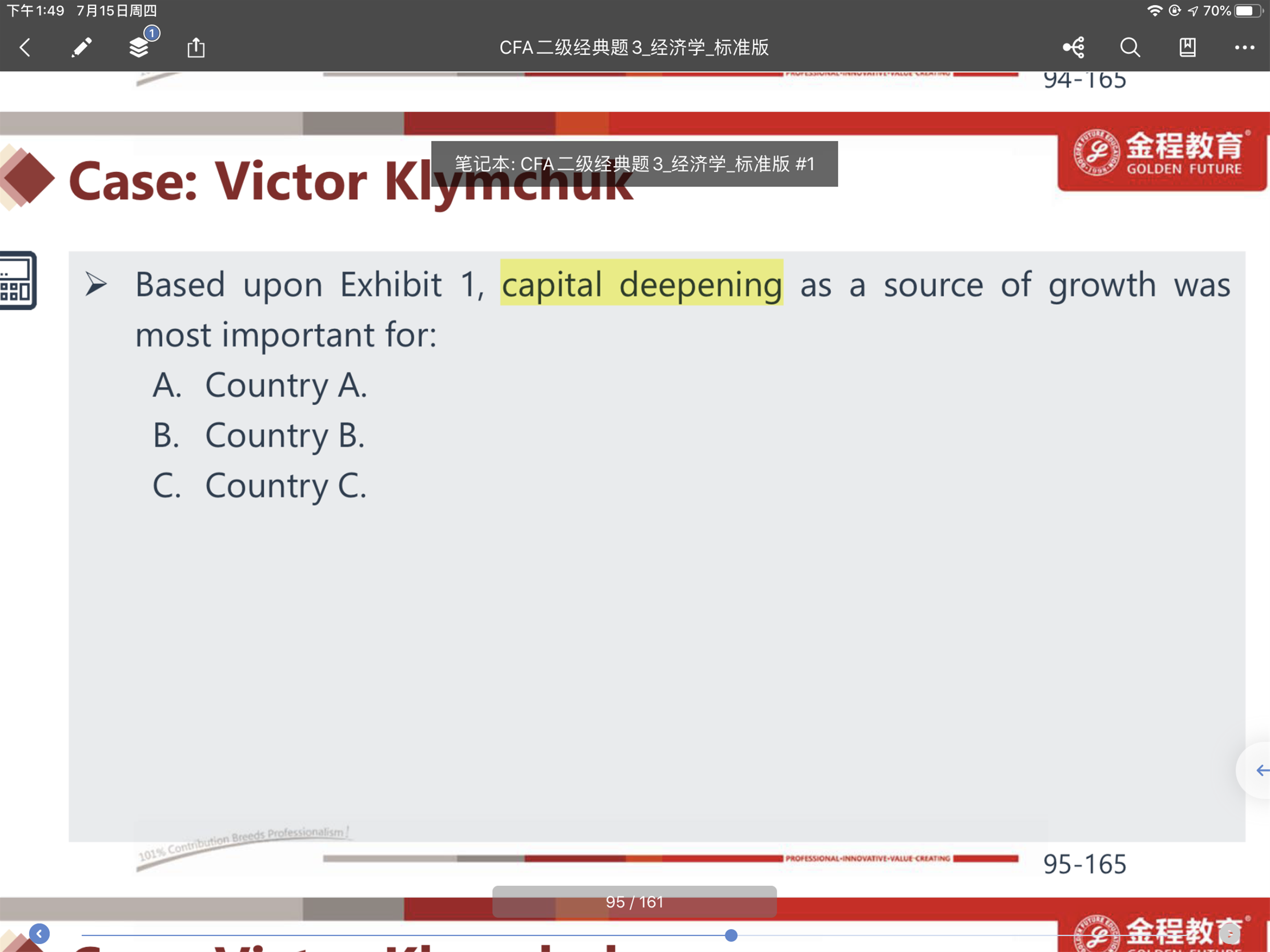 那请问为这么这题的capital deepening 是由Δ%y-Δ%A?如果这三个国家的α不同的话,不就判断不了了吗