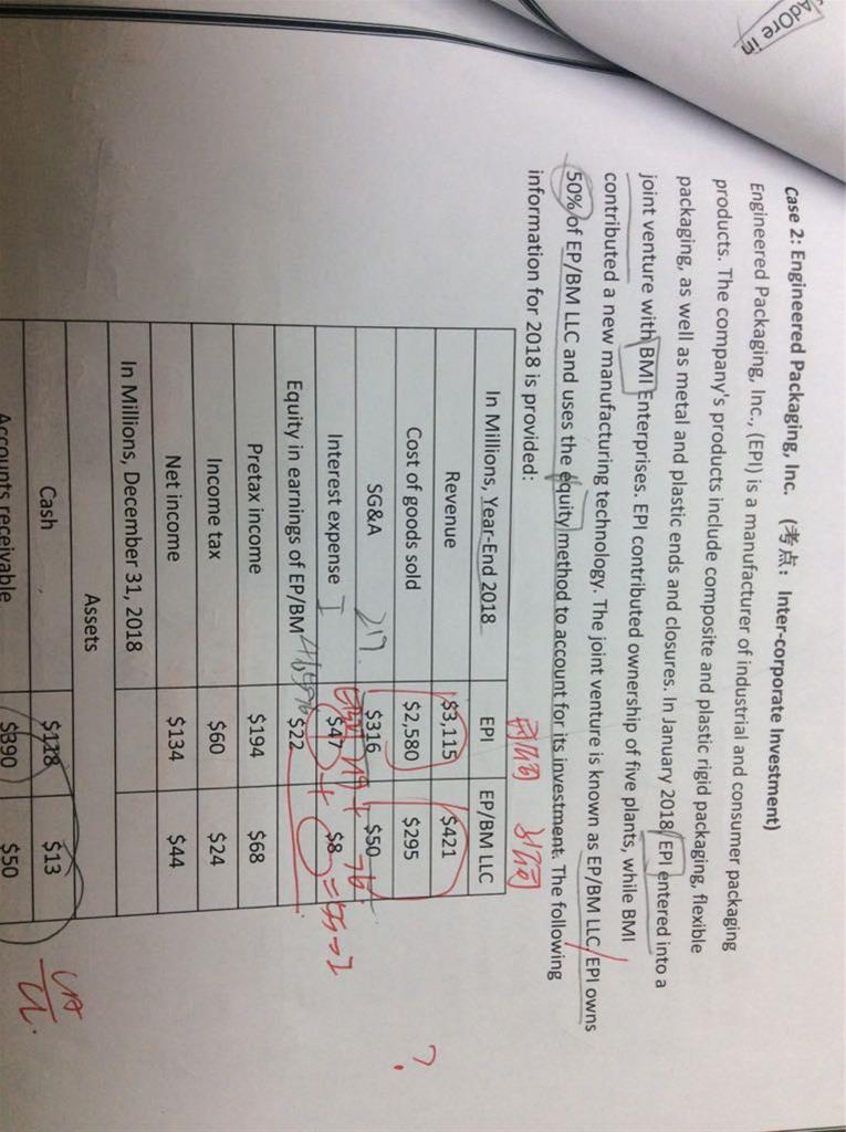 EPI这道题目中,EPI和后面的子公司报表也是合并前独立的。