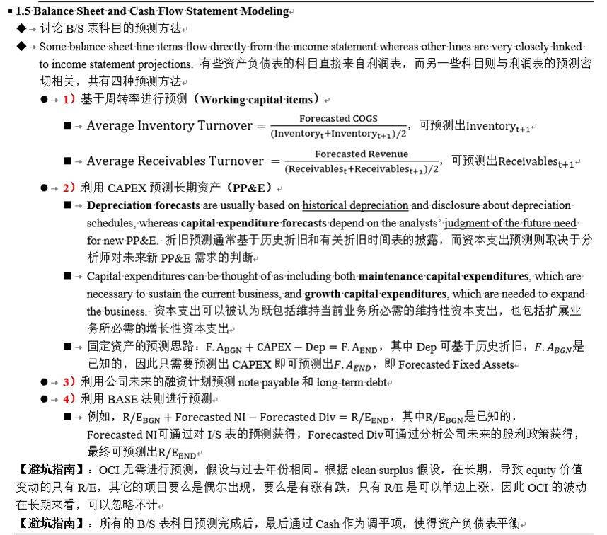 下面贴出了冲刺笔记关于资产负债表预测的部分内容,同学可以参考一下。