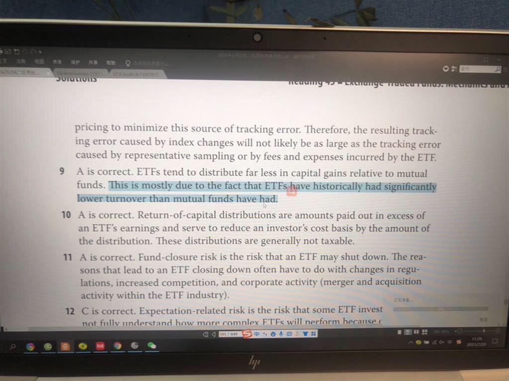 R43第9题,B哪里错了。还有答案中说ETF比MF的周转率低,所以资本利得少?答案这个解释不是很理解