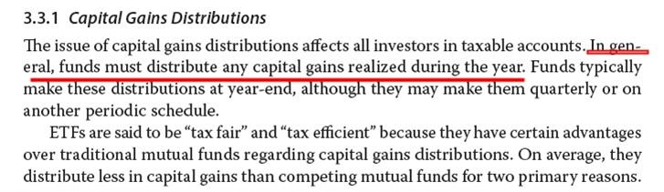 ETF组合和M.F相比的换手率比较低,一般都买入持有,不会频繁的买卖。而captial gain要实现就需要卖出有capital gain的股票,买着不动光有浮盈是不会实现capital gain的。