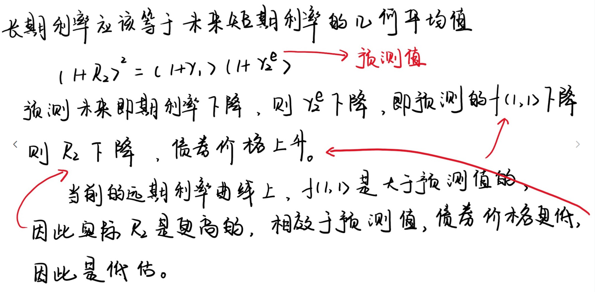 表格中C国即期利率下降,那么远期利率曲线应该是低于即期利率曲线的,但是她这里说收益率曲线反转,也就是远期利率曲线应该是高于即期利率曲线,利率上升导致债券被低估。