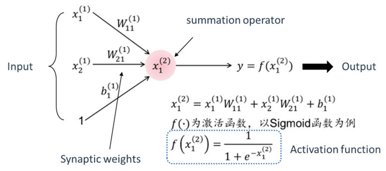 这道题涉及的是神经元的超参数建模,是指将各输入数据乘以其权重再加入一个偏置项b(偏置项是由建模人员决定的超参数),得到最终的净输入值为z。通过激活函数进行非线性转换(激活函数可由建模人员自己选择),通常使用sigmoid函数进行转换,sigmoid函数会将第一步计算出的z值进行非线性转换,转换为[0,1]之间的一个数值。sigmoid激活函数可以理解为一个“调光开关”,减少或增加输入的强度(使得灯更暗或更亮,本质就是调节输入的信号强度),通过sigmoid函数将总的净输入转换为接近于0的输出(灯光暗),这个数值较低的输出值意味着该节点不会被触发,因此没有任何内容会传递给下一个节点;净输入被转换为接近1的输出(灯光亮),因此该节点被触发,如果存在第二个隐藏层,则将激活函数的输出传输到下一层的节点,如果没有其它的隐藏层,数据将传输到输出层的节点,整个数据在神经网络中的传播过程称为正向传播(forward propagation)