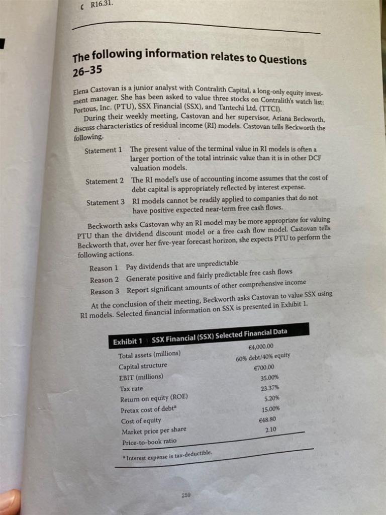 1、27题:这题是问,哪个理由支持用RI 模型进行估值,原因2说可以比较公允的估算处FCF,而且还是正的,那么就用FCF 折现模型就好了,没必要用RI。