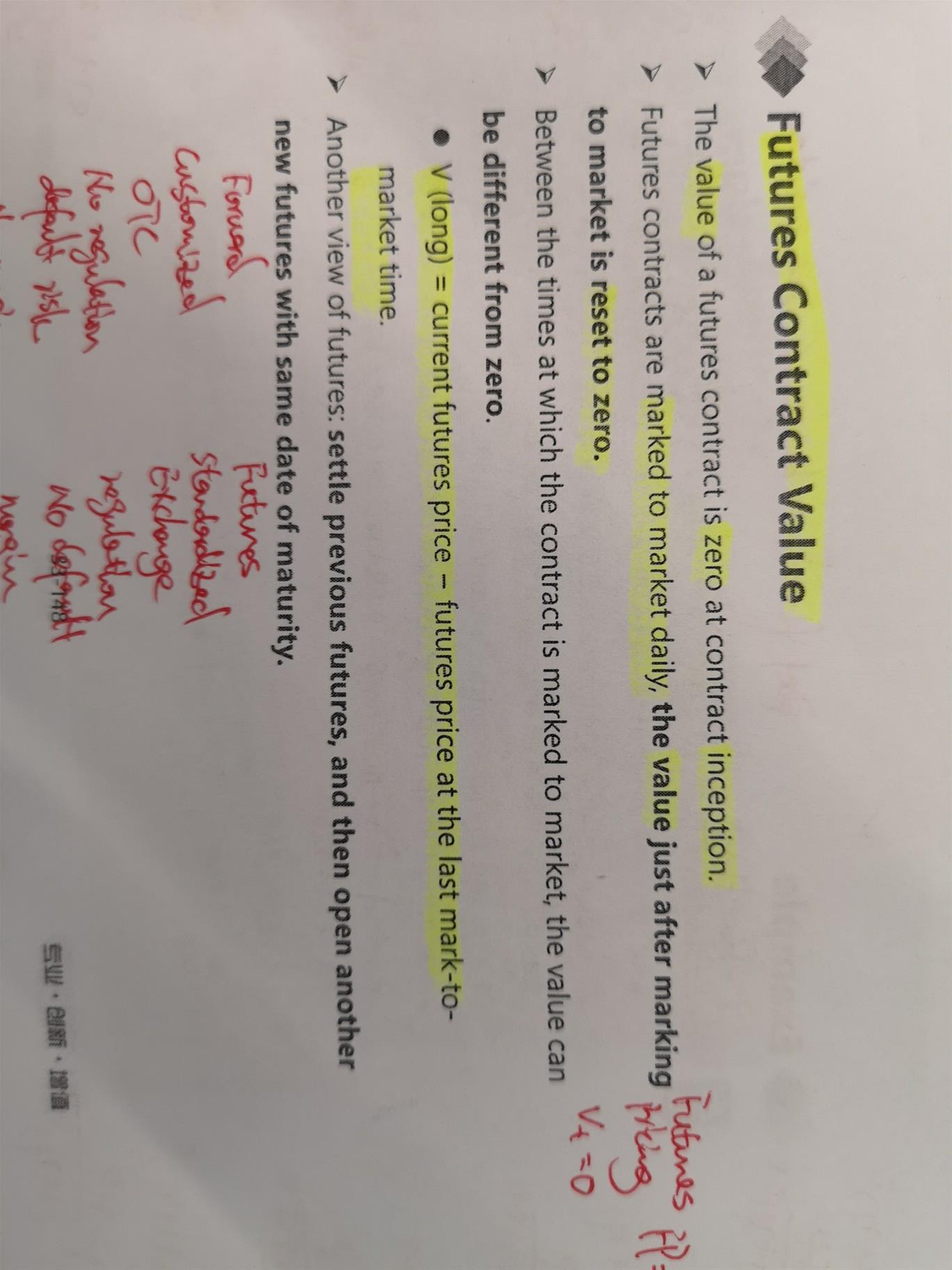 第二,盯市的意思就是逐日结算,盯市的价值是=远期价格-每日期货价格;对于每日期货价格到底怎么算的方法有很多,在CFA中同学不用掌握