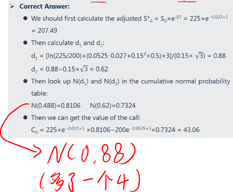 【考试从来没有考过N(d1)的计算,只要了解即可,但是同学一定要对于BSM的assumption要掌握,这一点考试还是会考的】