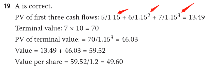 课后题20,变化前后比较的时候为什么前三期的现金流不算进去呢,只把一个terminal value折现?