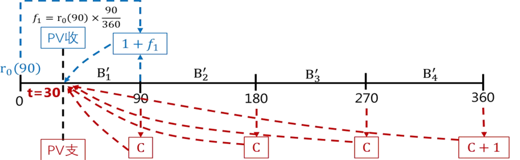 浮动债券的现值价值,应该是未来现金流折现,为1.为什么还要加R0/90?