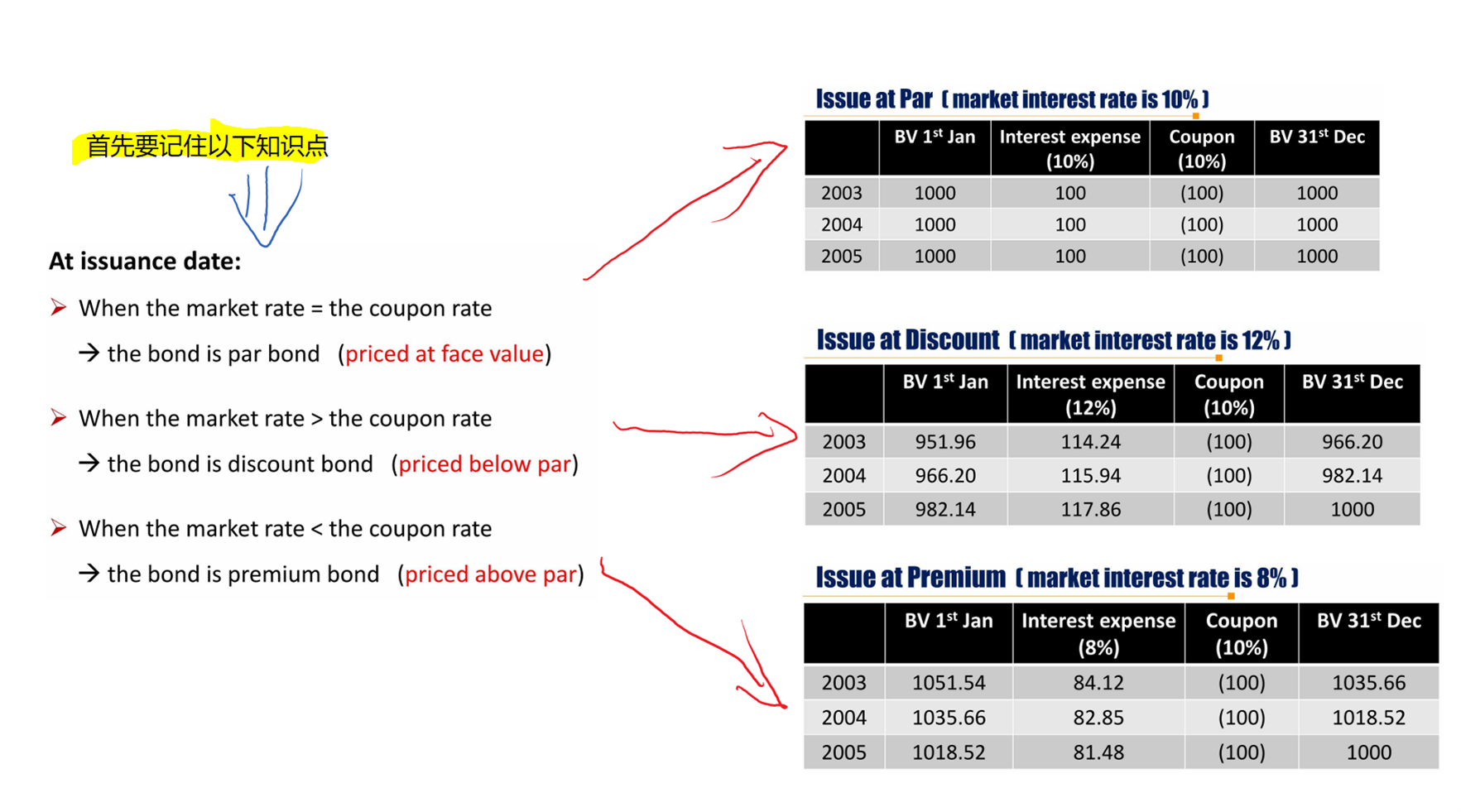 另外,题目问的是什么情况下利息收入比较低,就是说什么时候interest<coupon;interest<coupon属于溢价债券,溢价债券的par value要低于发行成本(issuing cost),