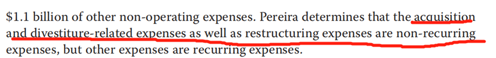 同学您好,P认为acquisition and divestiture-related expenses(1.2 billion)和restructuring expenses(0.5 billion)是Non-recurring expense,但是除此之外其他的expenses are recurring expenses.