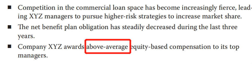 因为股权激励就像是一个公司的费用(指的是公司给到员工的激励费和奖金),如果股权激励above average,就指的是公司的费用越多,对公司越不利