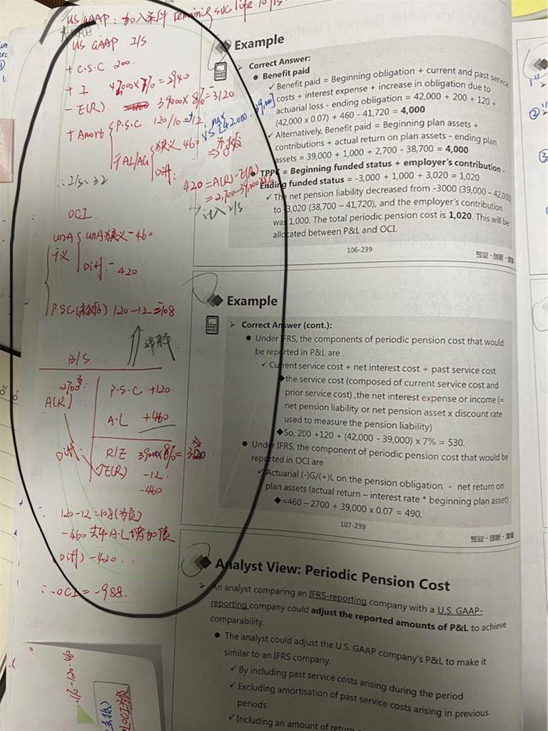 第二张图中红色部分,是第一张图下面的例题加了一个10年生于年限,用US GAAP去解,我想问I/S中摊销那部分AG/L(460)和Diff. AR-ER(420)应该如何去判断摊不摊销,是460、420分别和4200去比?哪个大于4200,就用剩余年限去摊么?不大的就摊销部分为0?