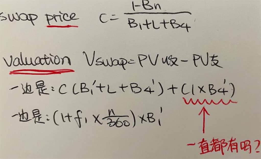 1,首先算swap price的时候,都是 1=C✖B1+C✖B2+C✖B2+.....+C✖Bn+1✖Bn,其中C指的是固定端的票息,B代表折现因子;