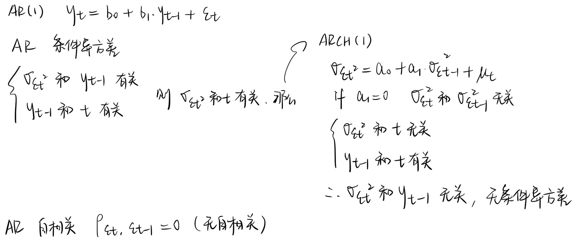 这两者分别对应的是自回归模型中三个前提假设中的前两个: