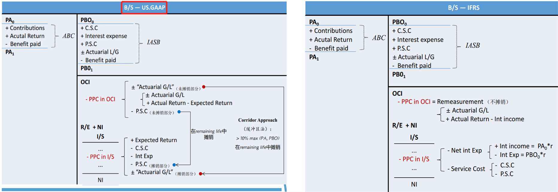 老师好,FRA养老金 Kensington Plc case第六小题提到了“Periodic pension cost”,选项里面提到了funded status 所以我可以联系到是经济养老金,和I/S 里面的periodic pension cost有什么关系吗? 我笔记里写到了“利润表里的Periodic pension cost 加上OCI 里面的pension cost 加起来等于经济养老金,”可是IFRS的OCI里是re Measurement 呀,OCI里有pension cost吗? 谢谢老师!!