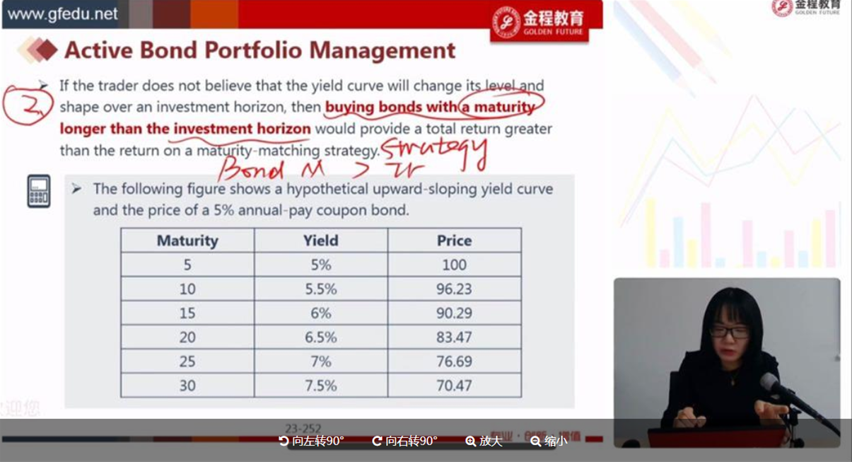 这里利用的就是收益率向上倾斜,而且对于距离到期日还有25年时间的债券,我们仍是用这条曲线的,以及所对应的价格,所以简单理解就是保持收益率曲线不变。