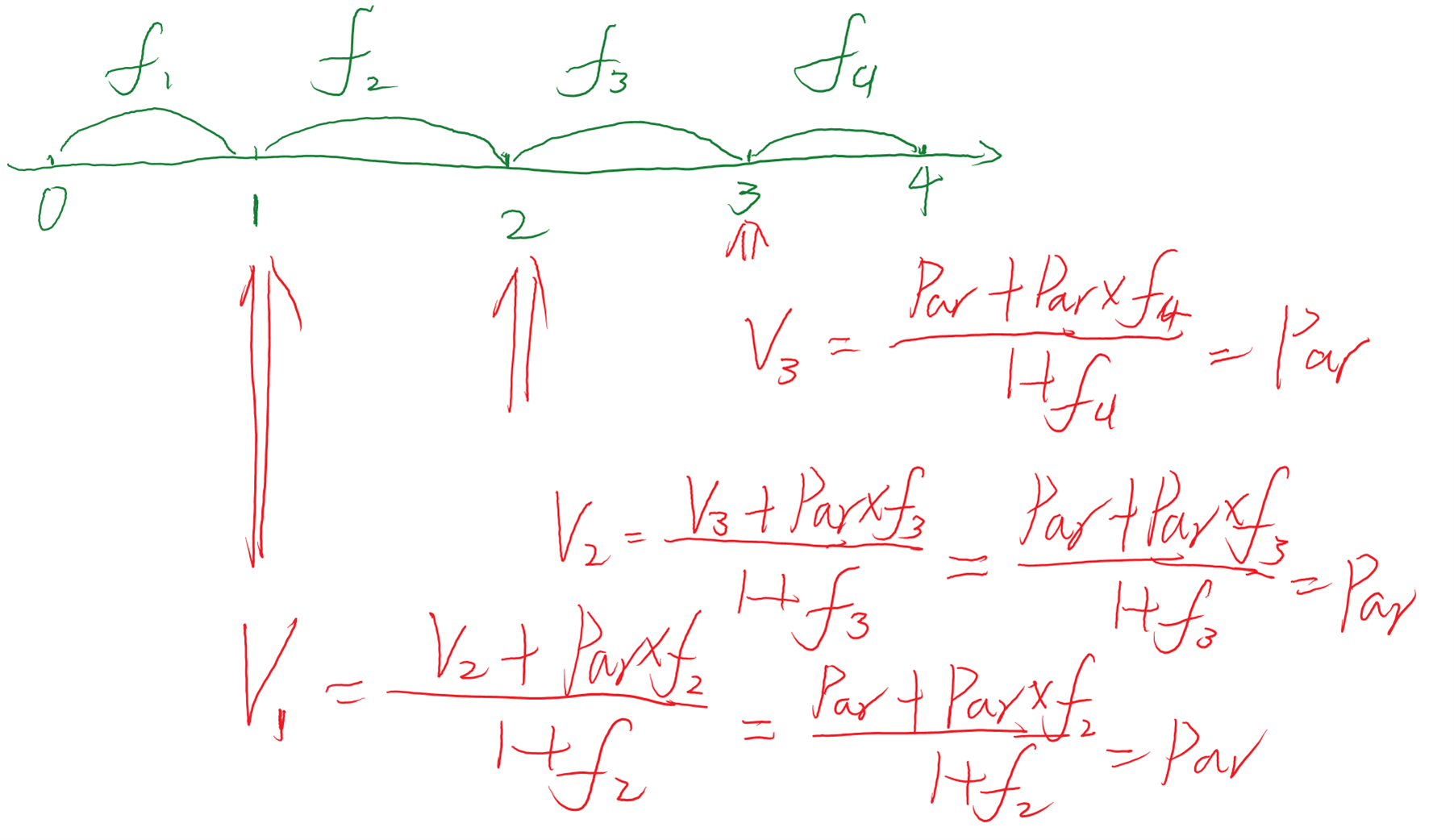 这个推到的结论就是想告诉您,每一个付息日,浮动债券的价值都是等于par value=1;