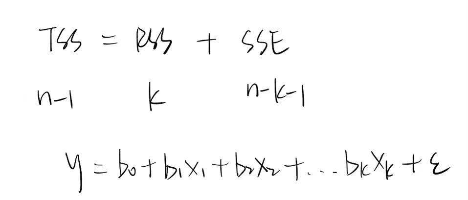 根据下图,因为我们是用x去解释y,所以回归部分对应的自由度是自变量的个数k。