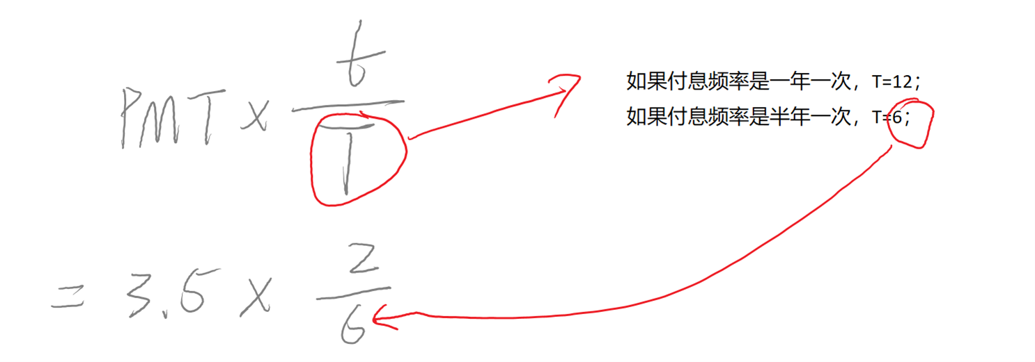 债券是半年付息一次,所以计算应计利息的T=6,如图