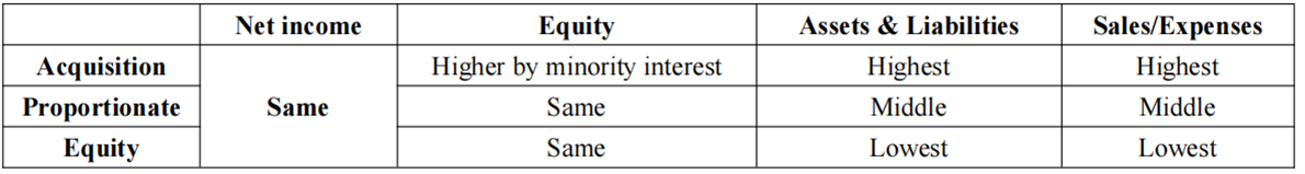 equity method /Aquisition method/proportionate method 三者的Equity都是相同的吗?是母公司equity