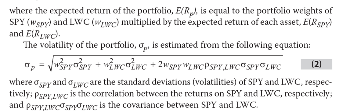 假设组合中有LWC和SPY两只股票,则组合的方差计算公式如下。