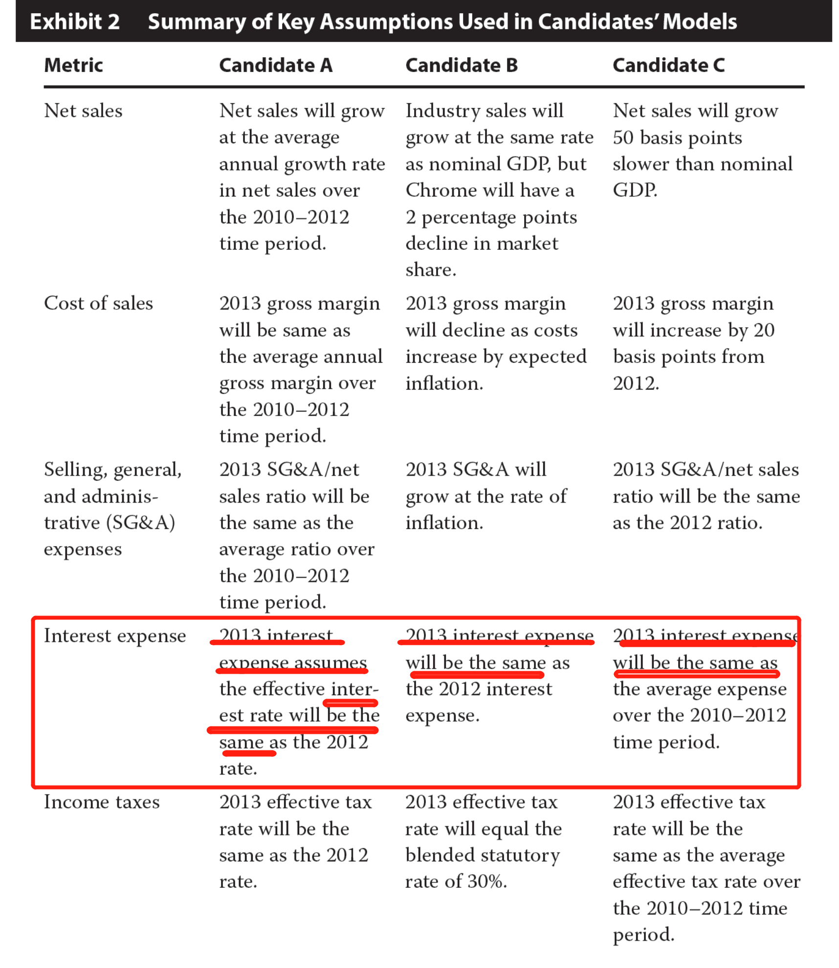 同学你好,这一题问根据表2中的assumption,哪位的forecasted interest expense可以体现debt level的变化