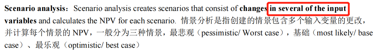 情景分析指的是对于“一系列”的变量经行调整,而A,B选项只说了改变only一种变量!