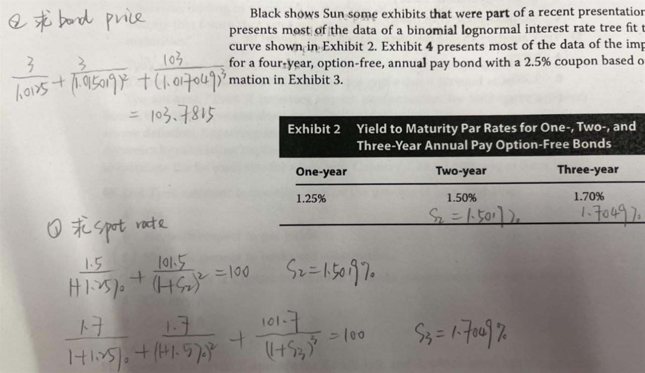 所以就用到了exhibit2中的par rate,由par rate通过bootstrapping的方法得到对应年份的即期利率,par rate等于面值为par的付息债券的YTM,所以par rate=coupon rate=YTM。