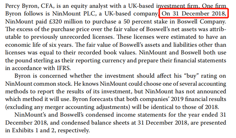 题目说了在2018/12号产生了收购,此时就是考虑初始计量的情况下,两个公司的比率;
