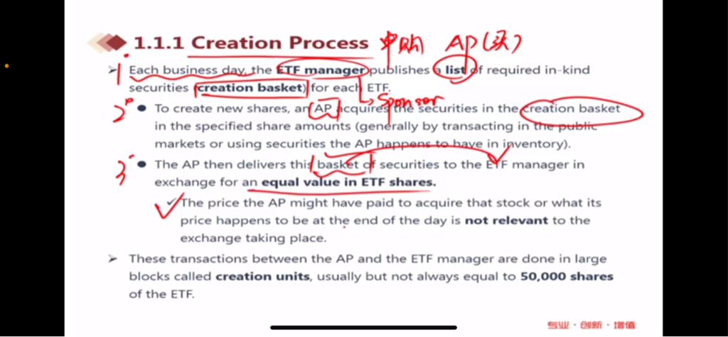 对的,整个creation process是基于 AP和基金公司之间的,它们两个人是实物交割,一个给份额,一个给股票,之间并没有产生现金的交付,所以和股票单价无关。