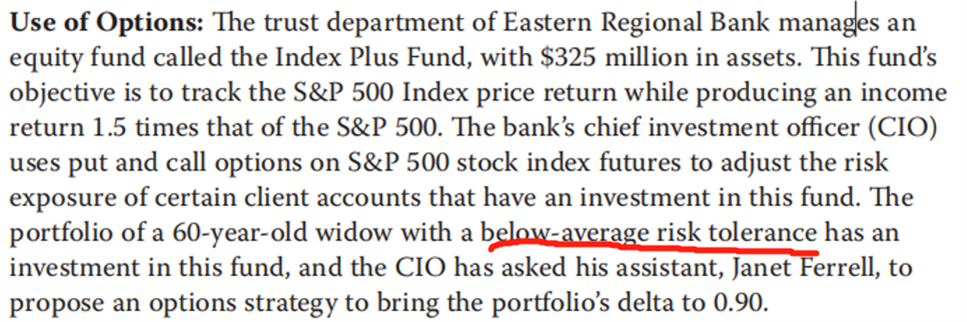 这个是衍生品的内容。题干说,这个寡妇是风险厌恶的投资者,也就是说要加入的option一定要对冲价格下降的风险;一级的衍生品中我们讲过,如果要对冲价格的下跌,一定是long put或者short call