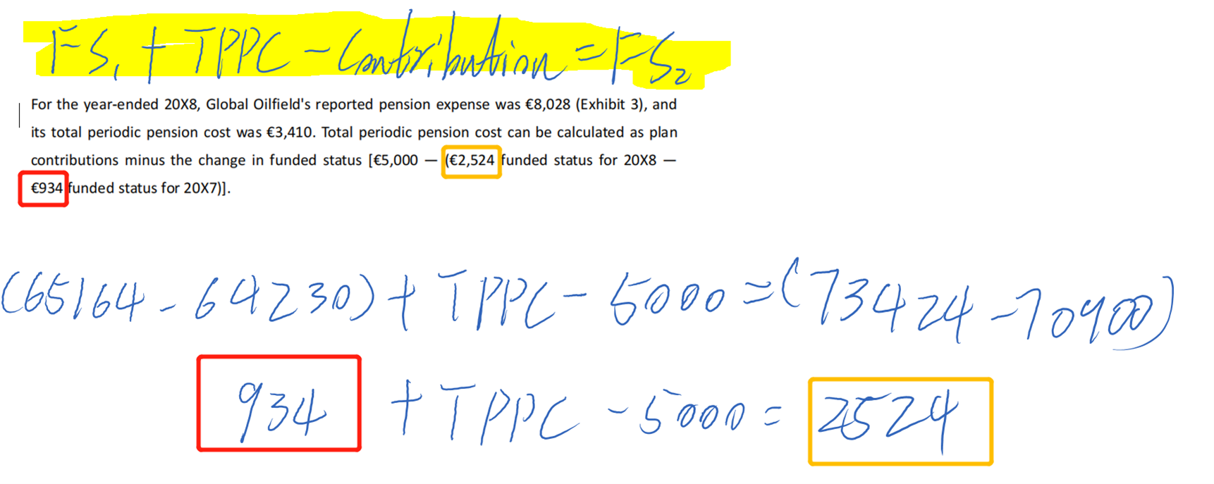 这里我知道老师的算法,但我自己用另一种算法为什么算出来答案不对呢?我用的是TPPC=actual return减去PBO的4个addition项,就是7084-(8091+4335+1932),这个算出来不是3410,是为什么呀?谢谢