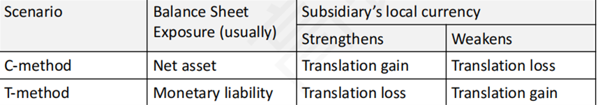 在T方法下,如果外币贬值,此时对于remeasurement应该是gain,所以NI会更高!