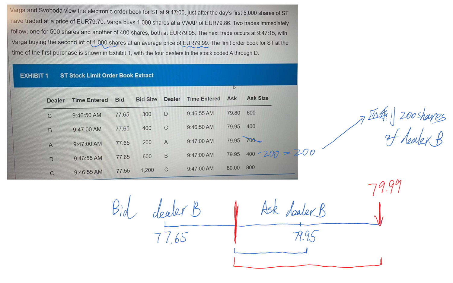 因为dealer B的ask报价79.95,但是Varga的买价79.99,从我给你画的图形就知道,比quoted spread宽