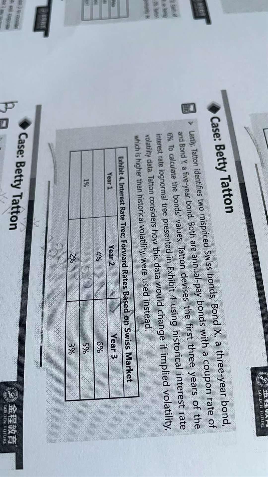 同学你好,这两个case中exhibit 4中给出的都是利率二叉树,都是用T=0时刻的利率对T=1时刻的现金流进行折现的呀。你为什么会觉得在betty case里是year1呢,或者说哪道小题有疑问可以继续追问哦