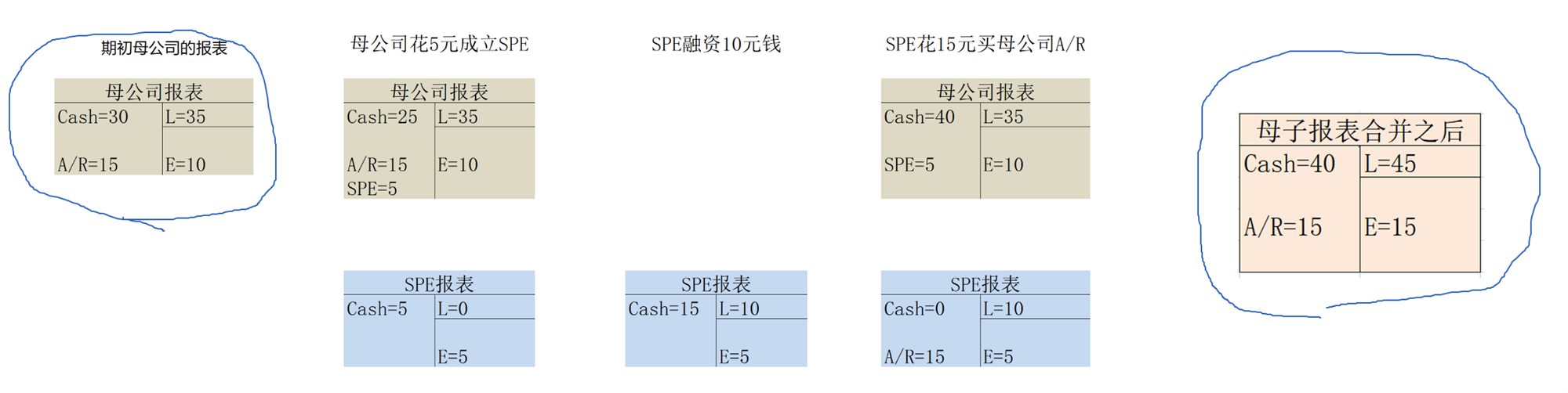 2,如果SPE和母公司报表一旦合并,那么就等于母公司自己去银行借钱(如图)